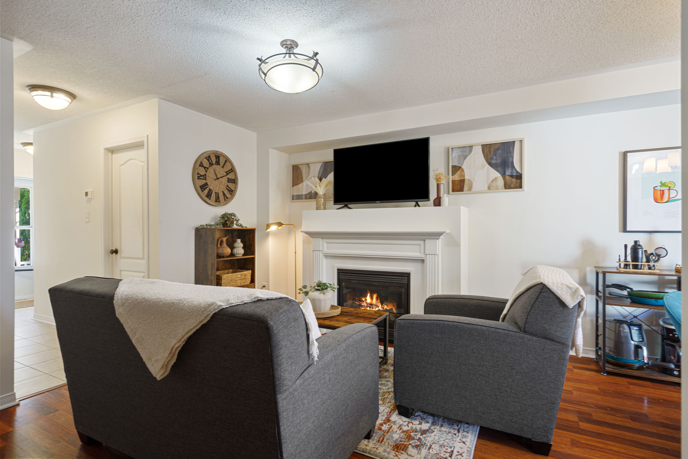 Welcome to this move-in-ready 3-bedroom, 3-bathroom freehold townhome, ideally positioned in one of Waterdown’s most family-friendly neighbourhoods. This desirable end unit offers a blend of comfort, convenience, and modern updates throughout. Step inside to find freshly painted main and upper levels, including updates to the garage and front door for a refreshed exterior look. The home features upgraded bathroom faucets, granite countertops, and a suite of brand-new kitchen appliances—including a built-in microwave, dishwasher, and gas stove. The washer and dryer were also replaced in May, ensuring a truly turn-key experience. The functional layout includes a finished basement, providing the perfect space for a family room, play area, or home office. Enjoy cozy nights with two fireplaces (one electric and one gas), and make the most of the generous backyard—ideal for entertaining, gardening, or unwinding outdoors. Upstairs, the spacious bedrooms offer comfort and privacy for the whole family. A single-car garage and private driveway add everyday convenience. Located close to schools, bus routes, parks, shopping, and transit, this home offers everything you need within minutes. Don’t miss your chance to make this beautiful property your own!